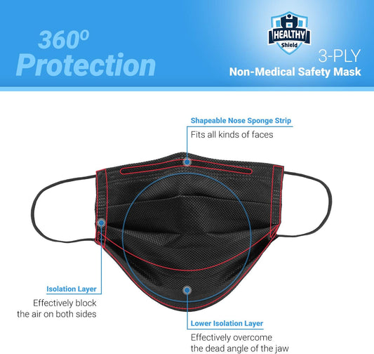 Healthy Shield Disposable Face Mask Black 50 pcs/Box