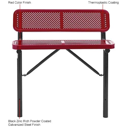 Centerline Dynamics Outdoor Seating 4' Outdoor Steel Bench w/ Backrest, Perforated Metal, In Ground Mount, Red