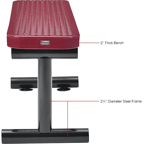- 4' Outdoor Steel Flat Bench, Expanded Metal, Red