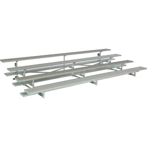 GT Grandstands Universal Aluminum Bleacher Series offers portable, low-maintenance, code-compliant bleacher seating. This series features a slim profile that make storage easy, and options for Tip N Roll which make it perfect for indoor use. Bleacher, 4 Row x 9'-0"L, (12" Nominal Seat Planks, 10" Nominal Tread Planks, 12" Front Row Seat Height, 6" Rise, 24" Tread), Aluminum Frame, Single Footboards, Tip N Roll Kit