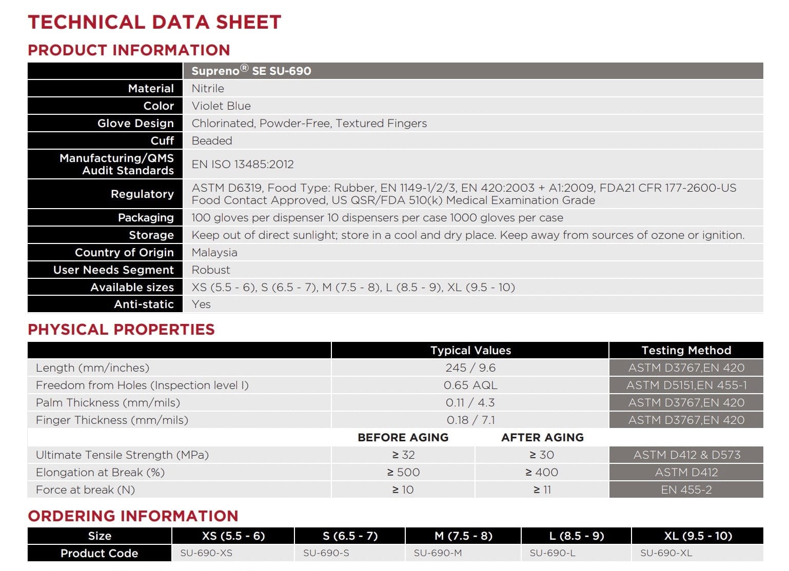 - Ansell MICROFLEX® Supreno® SE SU-690 Nitrile Gloves, Powder-Free, Beaded, Size L, 1000/Case