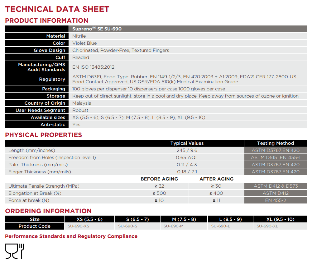 - Ansell MICROFLEX® Supreno® SE SU-690 Nitrile Gloves, Powder-Free, Beaded, Size S, 1000/Case