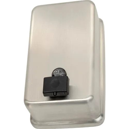ClassicSeries™ Soap Dispenser is ideal for restrooms in offices, restaurants, health care facilities, schools, hospitals, and more. Vertical tank is constructed of durable, corrosion resistant stainless steel with a satin finish, and is vandal-resistant. Valve dispenses commercially marketed all-purpose hand soaps. Features concealed wall fastening, with hinged filler top that requires special key to open. Valve operates with less than 5 lbs. of force. Soap refill window allows for easy maintenance. 40-oz. capacity. Dimensions: 4-3/4"W x 3-1/2"D x 8-1/8"H.