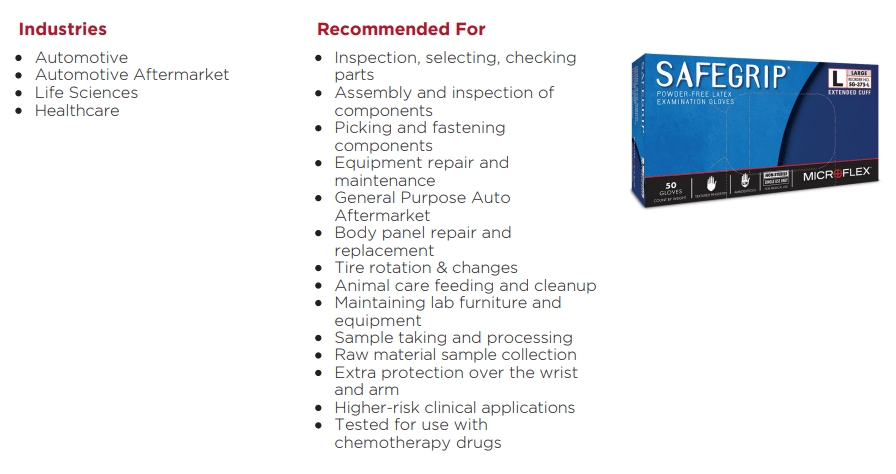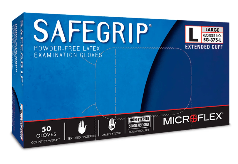 Centerline Dynamics Disposable Gloves Ansell  MICROFLEX® SafeGrip® SG-375 Latex Gloves, Powder-Free, Beaded, Size L, 500/Case
