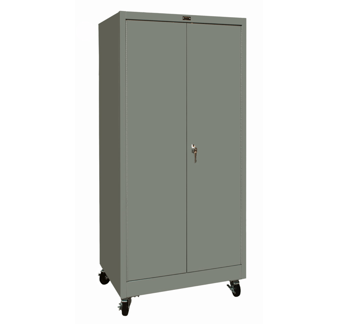 Centerline Dynamics 800 Series Solid Door Cabinets Dark Gray / Assembled Hallowell 800 Series Mobile Storage Cabinet, 36"W  x 24"D x 78"H, Single Tier, Double Solid Door, 1-Wide