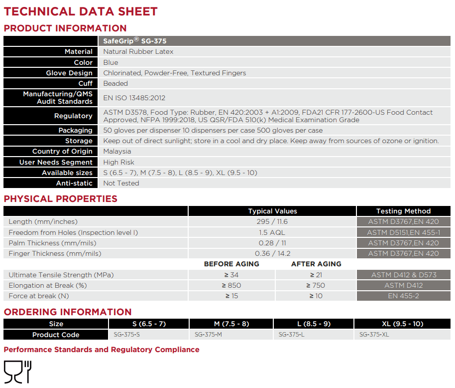 Centerline Dynamics Gloves Ansell  MICROFLEX® SafeGrip® SG-375 Latex Gloves, Powder-Free, Beaded, Size XL, 50/Pack