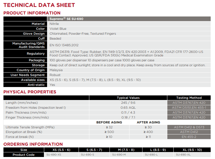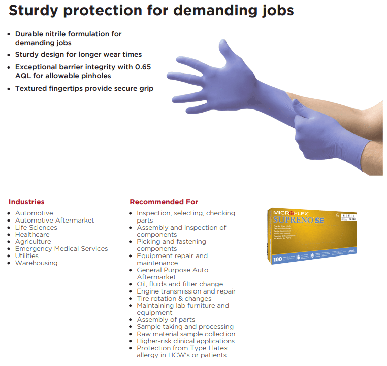 - Ansell MICROFLEX® Supreno® SE SU-690 Nitrile Gloves, Powder-Free, Beaded, Size M, 1000/Case