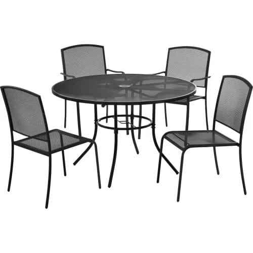 - Outdoor Café Armless Stacking Chair, Steel Mesh, Black, 4 Pack