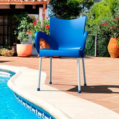 Romeo outdoor dining chair. Made from commercial grade resin with rust free aluminum legs. Great for outdoor spaces, patios and decks. Used by restaurants, cafes and hotels. Stackable for easy storage. No Assembly Required.