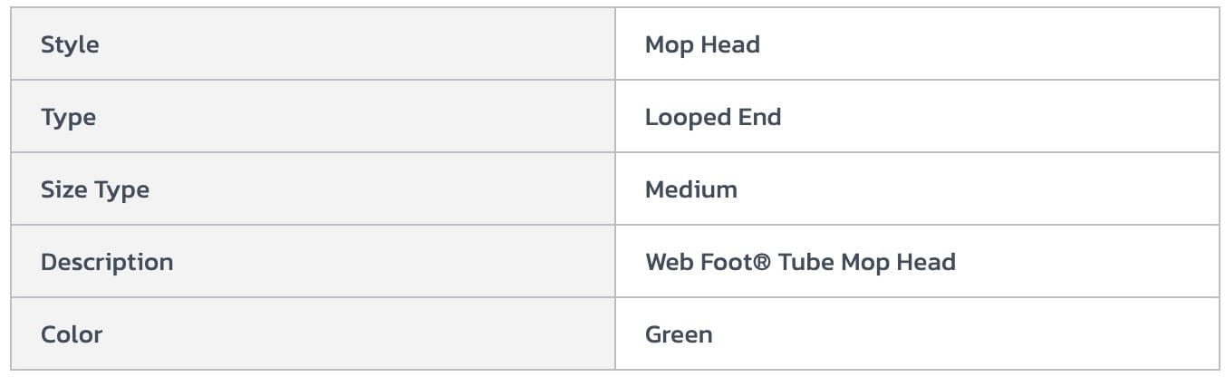 Twice the cleaning power of cotton mops. Continuous very fine filament, bi-component split microfiber yarn reaches deep into floor surfaces to provide superior cleaning efficacy. Extra durable and abrasive headband for heavy duty scrubbing. Helps to earn LEED points and contributes to sustainability. Withstands over 200 launderings and is bleach safe. Medium size mop head. 5" headband. Sold 6 mop heads per case.