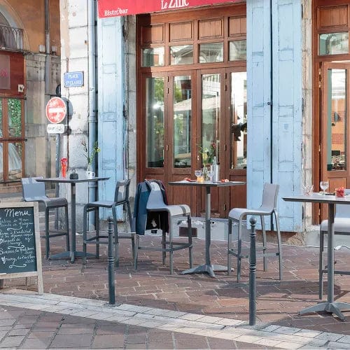 Sophisticated and stackable, the Sunset armless barstool is constructed with a heavy-duty aluminum frame. Its Textilene sling is antimicrobial and UV resistant for years of wear, indoors or out!
