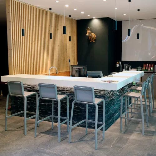 Centerline Dynamics Outdoor Seating Sunset Armless Barstool, Solid Gray Sling On Volcanic Black Frame - Pkg Qty 2