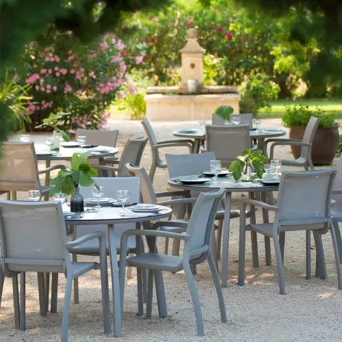 Sunset Stacking Outdoor Armchair, Solid Gray Sling On Platinum Gray Frame, Pk of 16