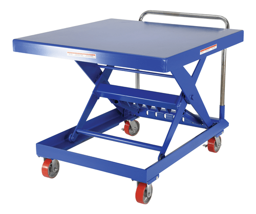 The auto-Hite cart raises and lowers as materials are removed or added to the platform, keeping material at an ergonomic work height. It increases efficiency while reducing potentially harmful bending and twisting motions. Carts utilize tension springs which can be adjusted in order to fit each particular application. The unit has an all steel construction with a removable handle and rolls smoothly on polyurethane casters, two (2) rigid, and two (2) swivel with brake.