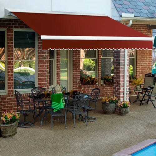 The Awntech's Highly Improved Beauty-Mark® Brand DESTIN EXE® heavy-duty retractable awning with aluminum protective hood. The DESTIN EXE model comes with heavier fabric than the DESTIN LX models and also the steel torsion bar is galvanized. The heavy duty, energy saving Destin-Lx is a retractable awning with aluminum protective hood that comes in manual or Motorized with remote option versions. This is a value added heavy duty awning with powder coated in white. The available sizes are starting 8 ft. wide up to 24 ft. wide with 7 ft. projection up to 10 ft. standard projection with optional 11.5 ft. and 12 ft. projection for 14 ft. wide and larger models. The fabrics are 100% solution dyed acrylic and available in many solid and striped patterns to choose from. The valance can be removed and stored in the winter. It will turn your outdoor living space into a personal retreat in the summer and retract for the warmth of the sun in the winter. This awning is designed for wall mount only. Some accessories that may be purchased in addition to your awning are winter cover, wind sensor, breeze supports and more. Enjoy your summer/outdoors without fear of getting sun burn and turn the outdoors in to party atmosphere.
