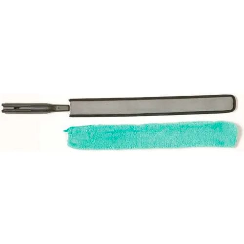 Microfiber Flexible High-Reach Duster is a flat, 20"L wand that reaches into narrow, hard-to-reach spaces. Microfiber duster effectively removes dust, dirt and grime. Flexible wand conforms to irregular surfaces. Dust wand features binding for easy threading of dusting sleeve. Quick connect handle converts hand duster into high duster. Replacement sleeves are available. 28-3/4" long. Sold in package quantity of 6.