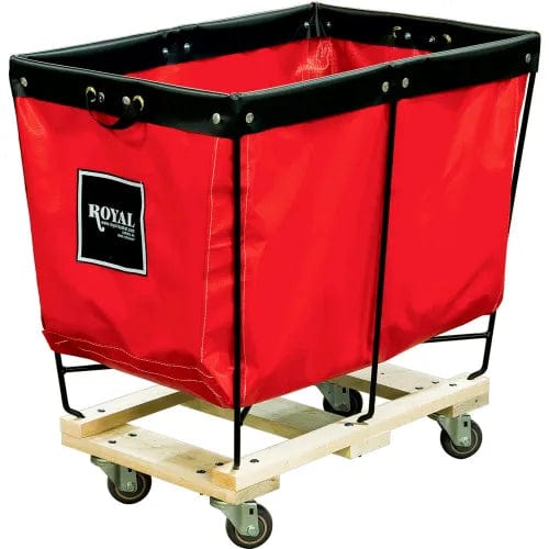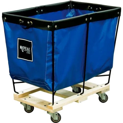 Extremely versatile, ergonomic cart for material handling, laundry, mail rooms and more. Elevated design allows for less bending and back strain. Constructed of a durable vinyl liner permanently riveted to a 3/8" steel wire frame. Carts maneuver easily on polyurethane casters mounted to a kiln-dried hardwood base. Ships fully assembled. Made in the USA. Standard colors blue and red. Additional colors, full line of accessories and custom sizes available.