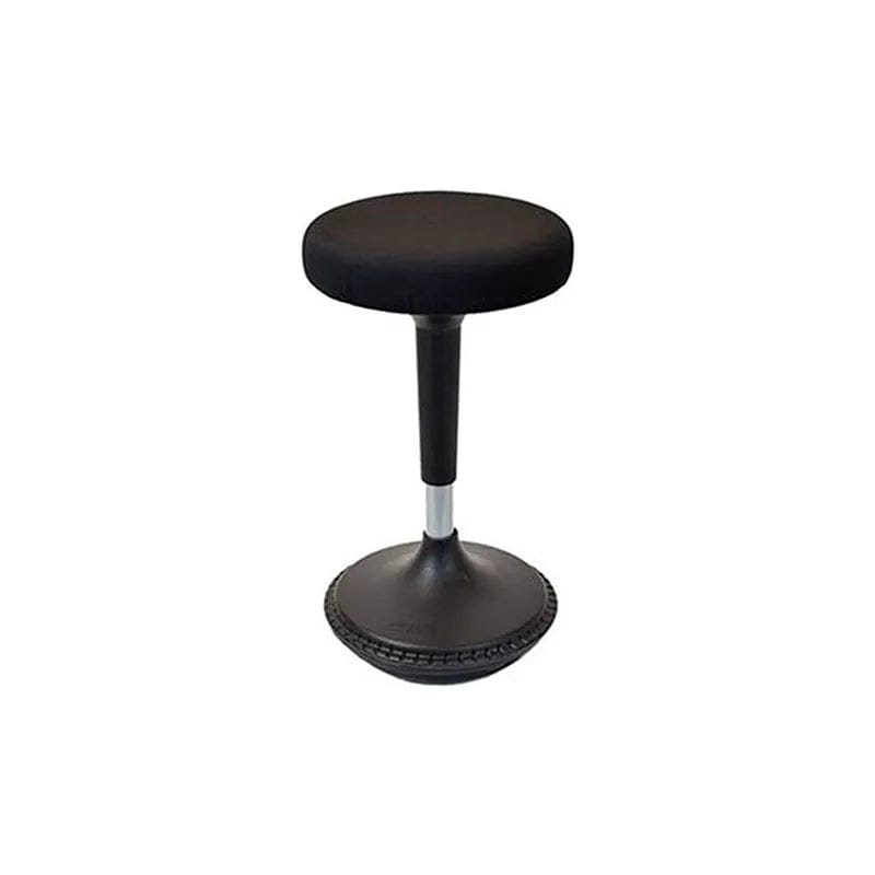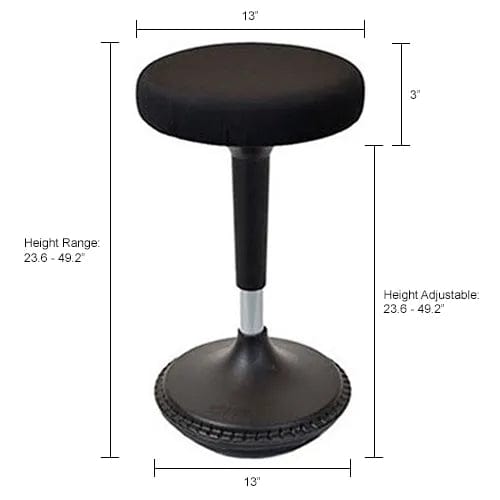 This stool is easy to sit on, quick to get up from the perfect rest spot for a busy person. Plus the plush, padded fabric seat is super comfortable for longer sitting periods. The unique seat shape makes it easy to control the stool, swivels 360°, and adjusts from common chair height (23") up to normal bar stool height (33"). The special rounded base grips most floors, is counter-balanced so you don't have to be in constant motion, and it allows Wobble Stool to return upright after use.