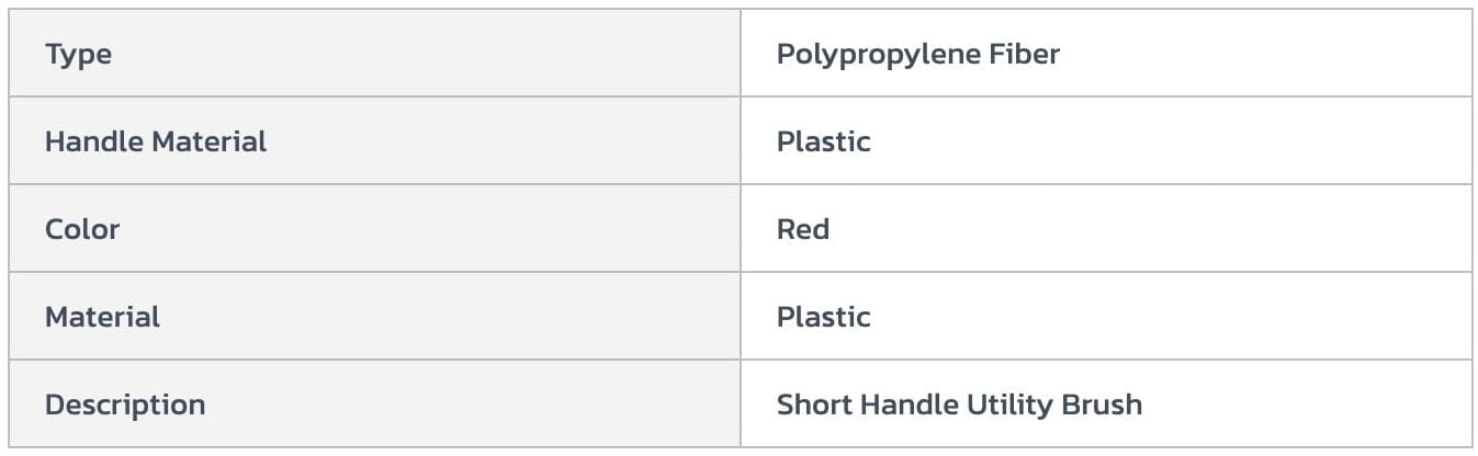 Libman Commercial Short Handle Utility Brush has an ergonomic rubber grip handle for comfortable cleaning. 3 1/2 x 4 scrubbing surface. Stapled 2 polymer fiber bristles with resin block. 80% recycled PET plastic bristles. 2 1/2 wide scraper edge for tough cleaning. Handle includes hanger hole.