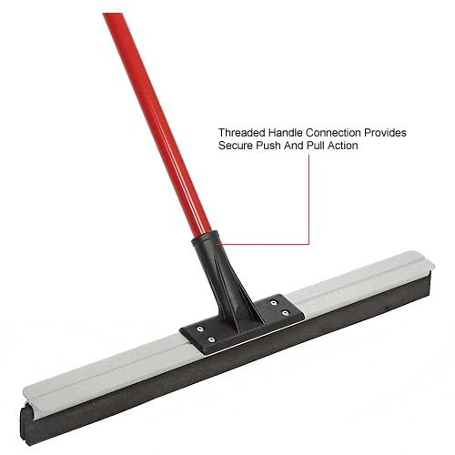 Ideal for removing water from any type of floor including uneven surfaces. Flexible rubber blade made of black, closed-cell foam rubber. 5' steel handle with durable threaded connection that allows both push and pull usage. 24" squeegee.