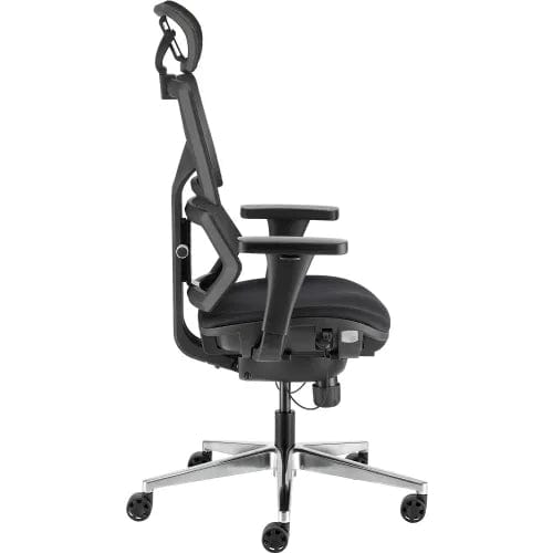 Improve posture and increase your comfort throughout the work day with the Mesh Back Chair with Seat Slider and Headrest. This chair has multiple adjustments, making it ideal for small corporate offices and in-home use. The polypropylene frame, molded foam seat, and mesh material is lightweight, cool, and comfortable for all-day use. 1-Year Limited Warranty.