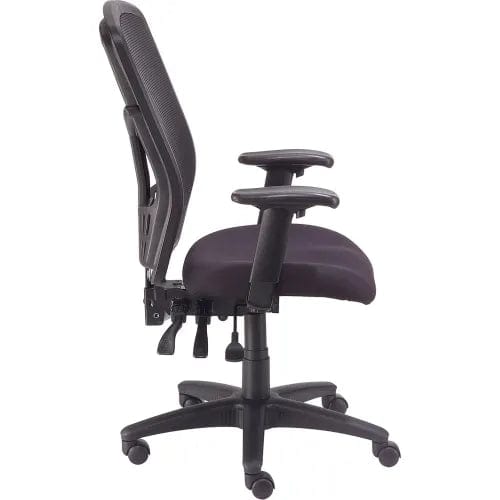 The Interion® Mesh Office Chair with High Back & Adjustable Arms easily compliments any office space that needs an office chair. Built-in lumbar support provides added back comfort. Fabric upholstered seat has 3-1/2 thick comfort cushioning. Mesh-back office chair features a plastic trim back to ensure long life. Height adjustable armrests help reduce arm fatigue. Stable 5-blade base with dual-wheel swivel casters for easy mobility. 2-Year Limited Warranty.
