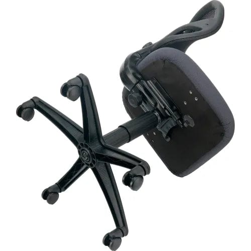 Mesh Back Task Chair with a fabric upholstered seat is perfect for offices, conference rooms, seminars and more. Ergonomic design with nylon mesh back conforms to body for cool, ventilated and supportive comfort. 16-1/2"H x 17-3/4"W plastic trim backrest ensures long lasting durability and built-in lumbar support provides added back comfort. Ratchet back height adjustment allows easy back rest height adjustment 1-1/2 inches. 18-1/2" square fabric upholstered seat has comfortable 3-3/4" thick cushioning is covered in long lasting, durable acrylic fabric upholstery for an attractive look. Waterfall contoured seat helps to reduce stress on knees and helps ensure proper circulation. Contoured back provides lumbar support and encourages proper posture. 18" - 23.25" seat height adjustment. Polypropylene five-blade base with 2" dual-wheel carpet casters provide easy mobility. Easy assembly. 2 Year Limited Warranty.