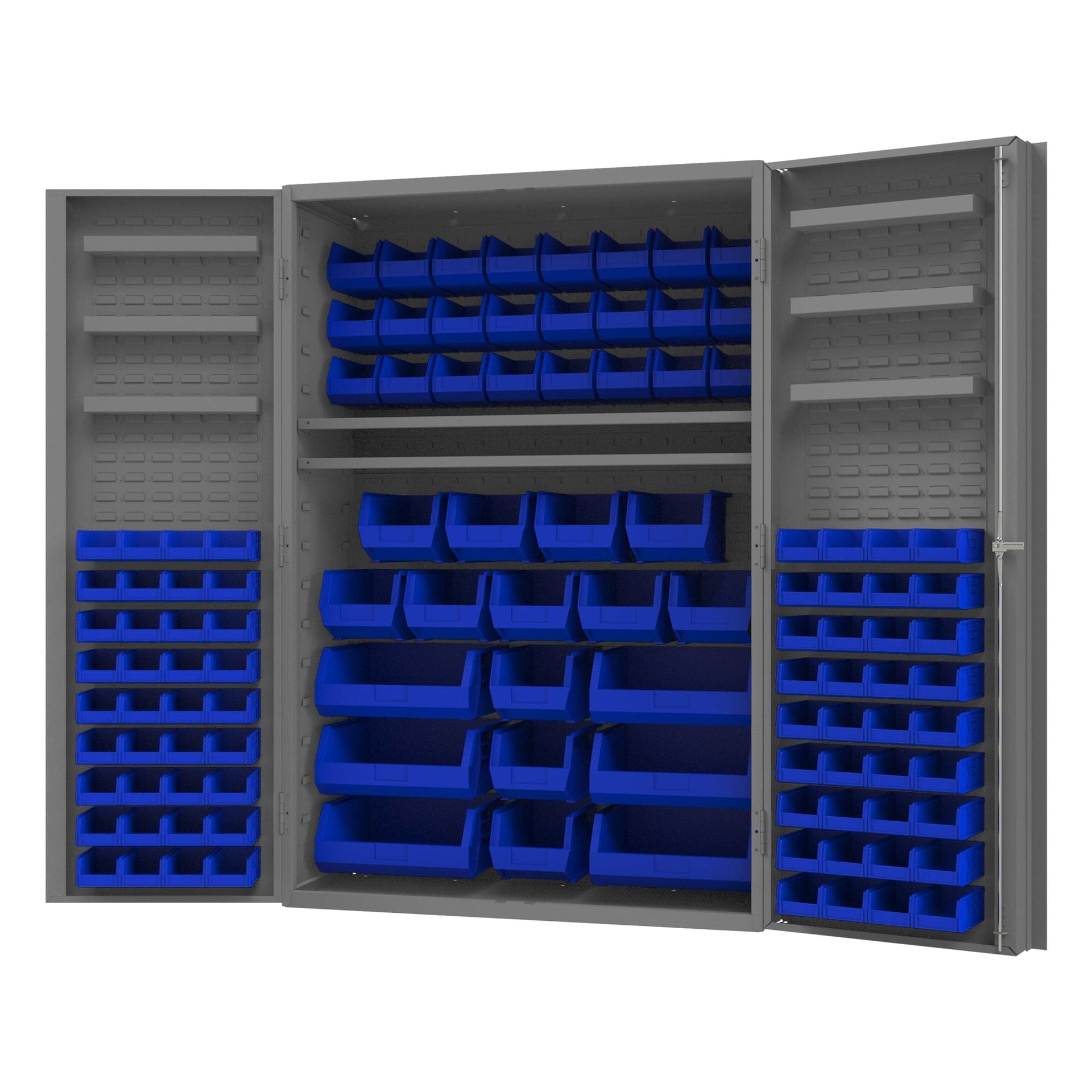 Centerline Dynamics Durham Speciality Cabinets Blue Durham Cabinet, 14 Gauge, 6 Door Trays, 2 adjustable shelves, 114 Bins, 48 x 24 x 72