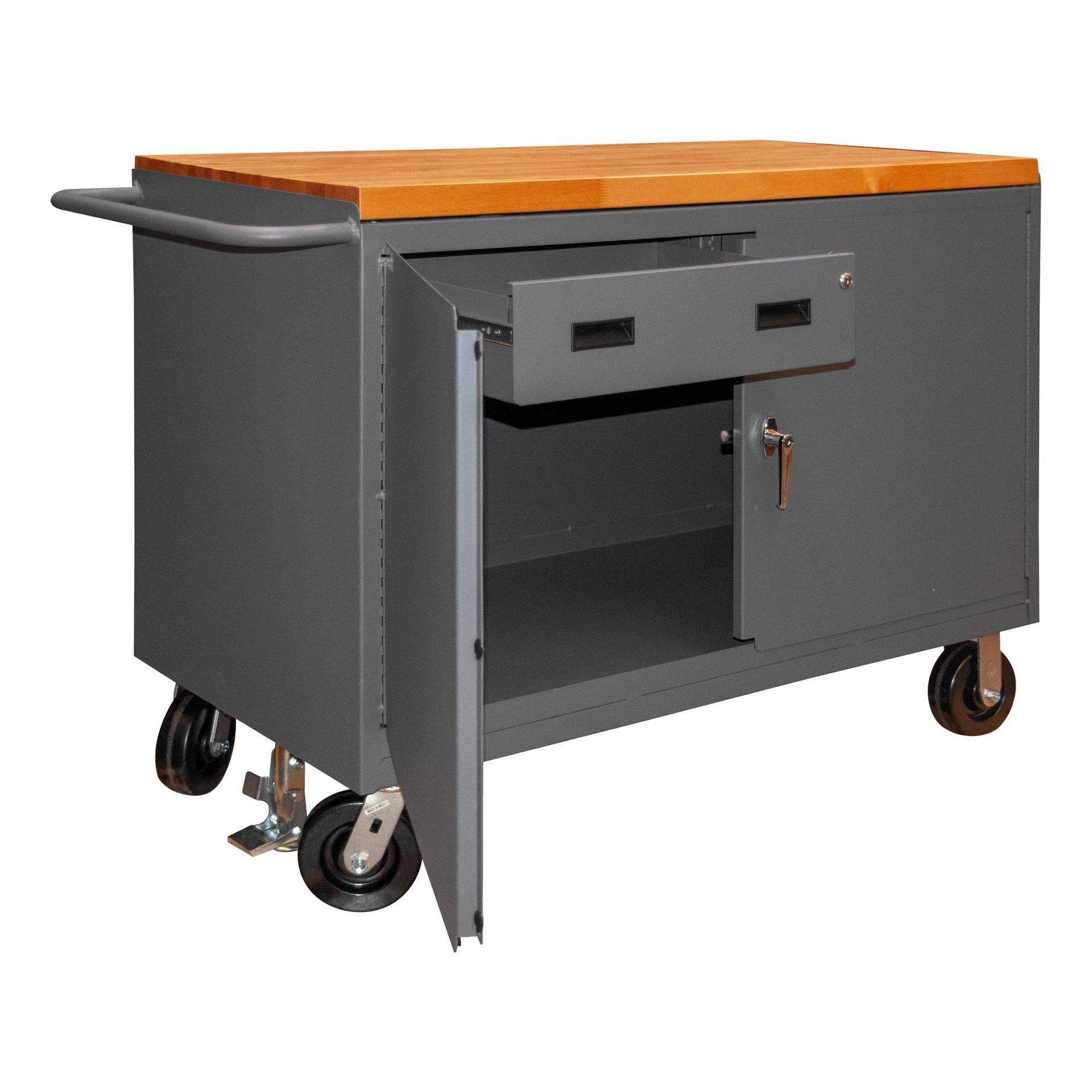 Mobile Bench Cabinet, 2 Drawers, Maple Top, Floor Lock, 24-1/4 x 54-1/8 x 38-1/2