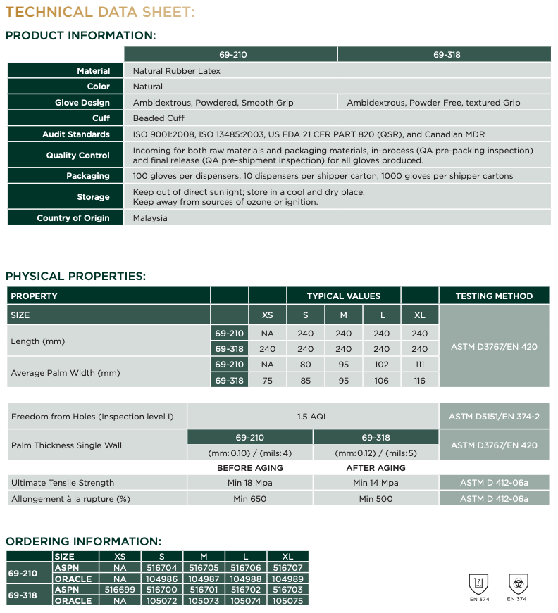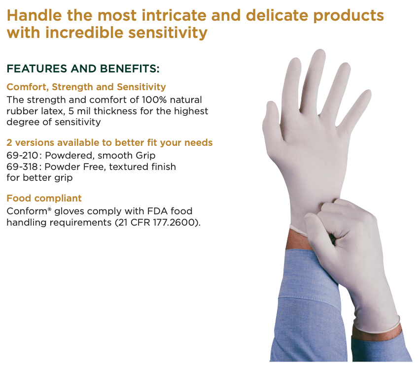 Made of natural rubber latex, TouchNTuff® 69-210 is a thin mil latex glove with enhanced tactile sensitivity. Lightly powdered, the glove absorbs moisture and offers easy donning and doffing.