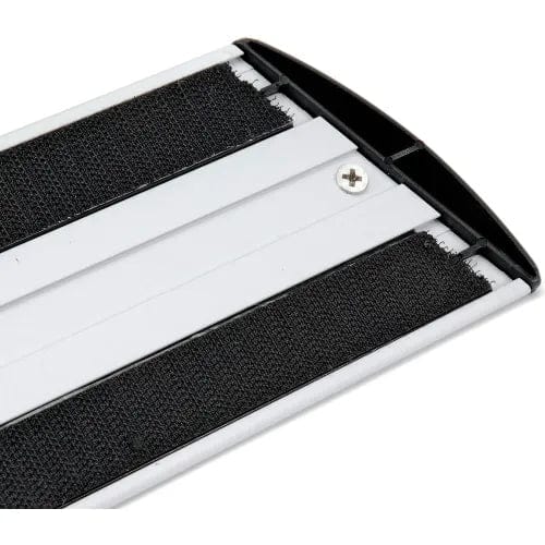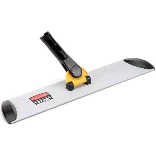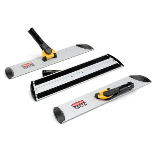 Easy, one-step connecting mechanism for quick mop assembly and changeover. Thin, flat frame reaches easily under low objects for thorough cleaning. Works with HYGEN microfiber pads (sold separately). Replaceable hook and loop fastener strips securely hold pads. Rounded plastic end caps prevent nicks and scrapes while mopping. Smooth surface for water runoff and easy cleaning. Lightweight aluminum construction, ergonomically designed with the end-use in mind. 24" frame includes pull-type squeegee for water and debris collection. 17" wet/dry frame. 3-1/2" width. Sold 6 frames per case.