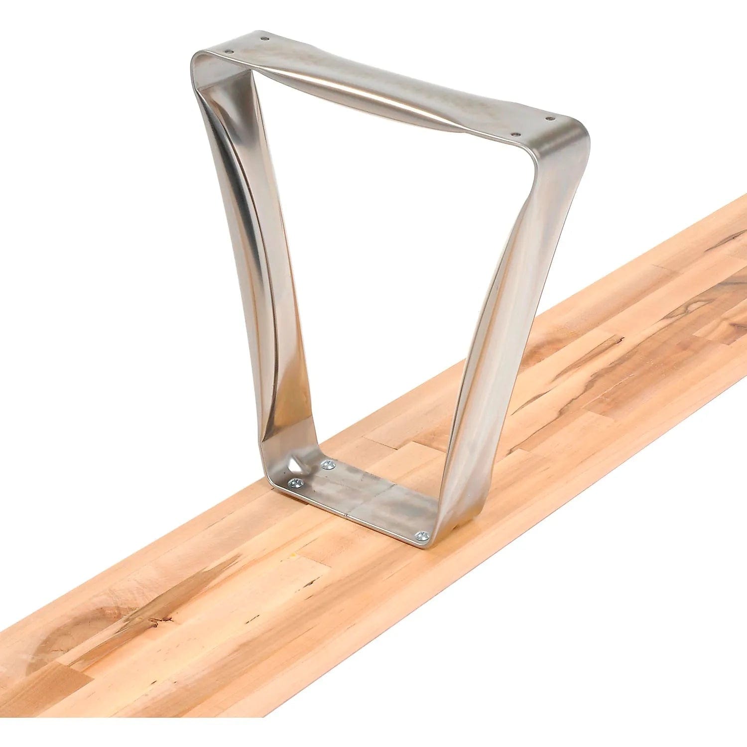 Extra convenience in the locker room. 1-1/4" thick hardwood bench features a heavily varnished top and sturdy stainless steel base. Trapezoid stainless steel 14"W base. Must be anchored to floor for maximum stability. Bench has two pedestals.