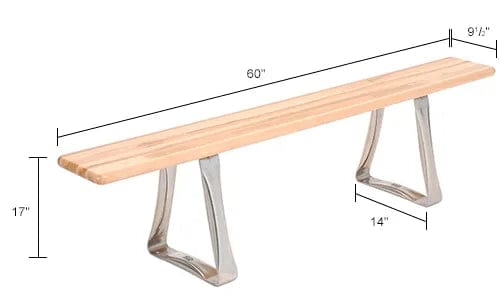 - Locker Room Bench, Hardwood With Trapezoid Legs, 60 x 9-1/2 x 17