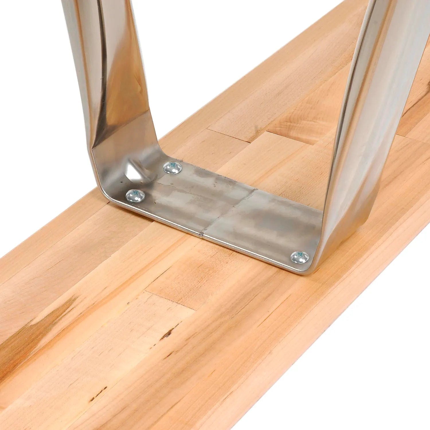 Locker Bench Hardwood Top w/Stainless Steel Trapezoid Pedestals, Bolt Down Style, 72"W x 9-1/2"D x 17"H