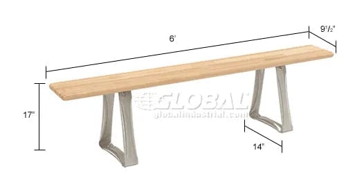 - Locker Room Bench, Hardwood With Trapezoid Legs, 72 x 9-1/2 x 17
