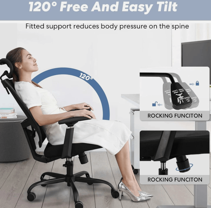 - Ergonomic Office Chair Featuring reliable ergonomic support, It's easy to adjust seat height, headrest, backrest and arms to meet different needs, the breathable mesh back and passive lumbar support good for sitting long hours