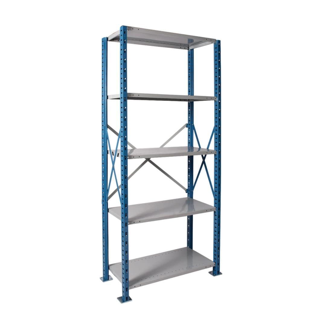 Centerline Dynamics H Post™ High Capacity Shelving Closed Starter Hallowell H-Post High Capacity Shelving 36"W x 18"D x 123"H, 5 Adjustable Shelves, Unit Open Style with Sway Braces