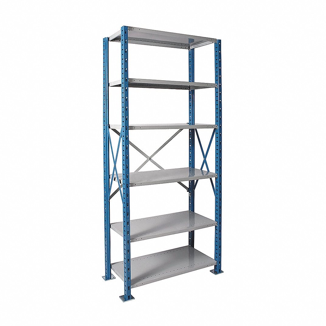 Centerline Dynamics H Post™ High Capacity Shelving Closed Starter Hallowell H-Post High Capacity Shelving 48"W x 18"D x 87"H, 6 Adjustable Shelves, Unit Open Style with Sway Braces