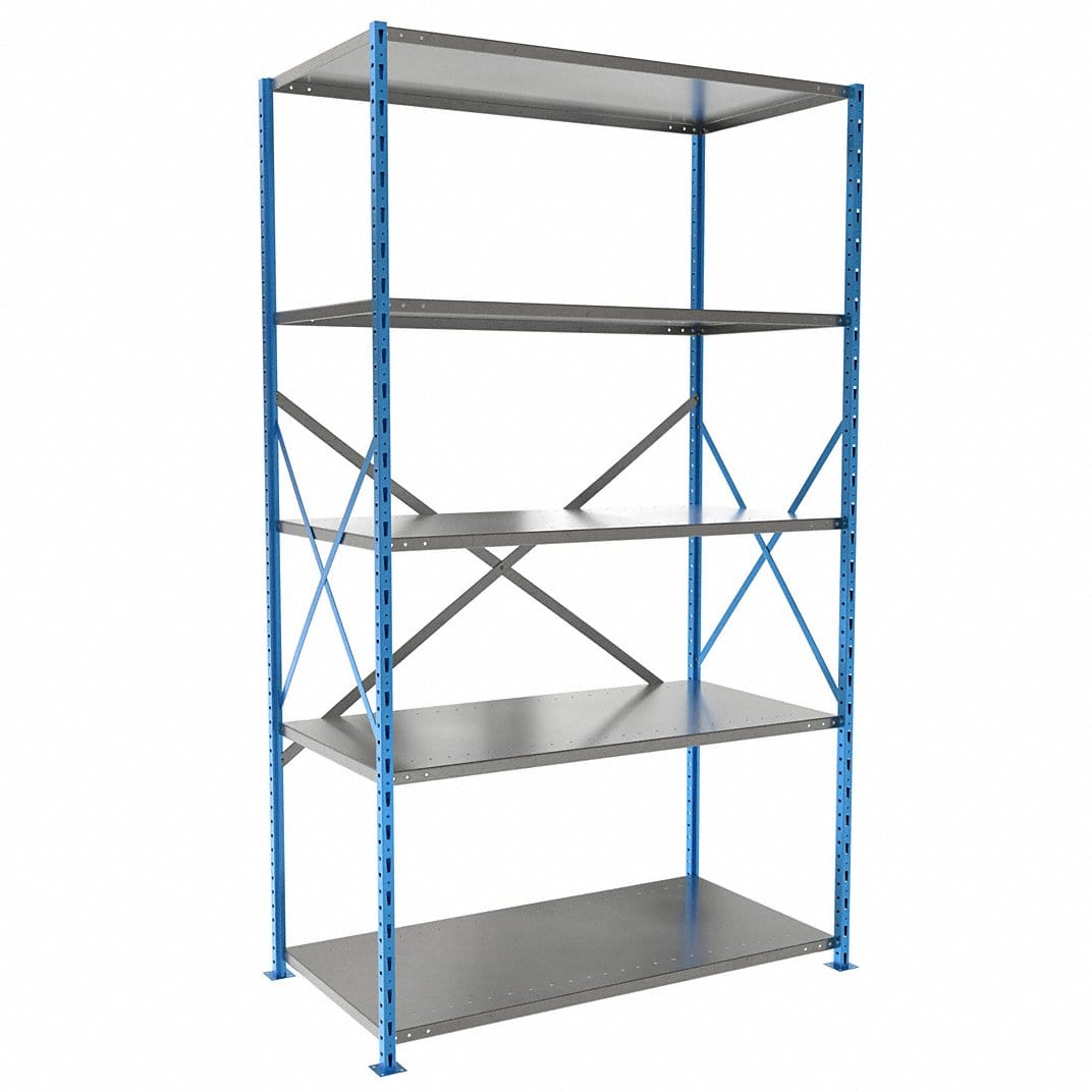 Centerline Dynamics H Post™ High Capacity Shelving Closed Starter Hallowell H-Post High Capacity Shelving 48"W x 24"D x 87"H, 5 Adjustable Shelves, Starter Unit Open Style with Sway Braces