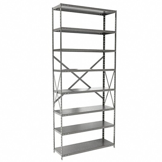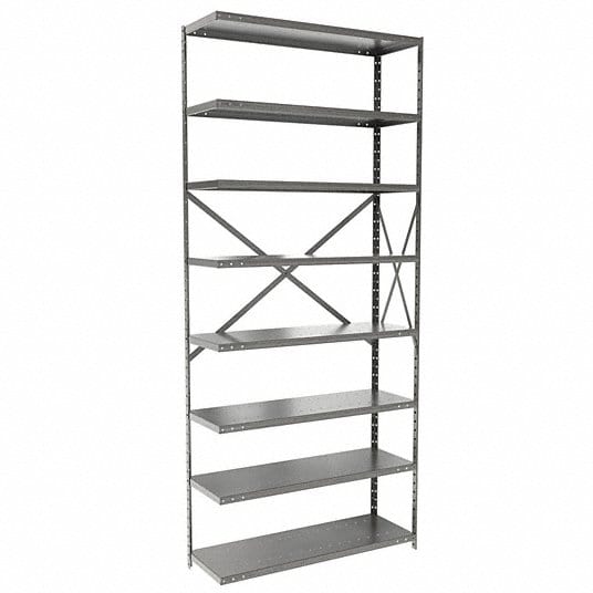 Centerline Dynamics Hi-Tech Metal Shelving Starter Hallowell Hi-Tech Metal Shelving 36"W x 12"D x 87"H 725 Dark Gray 8 Adjustable Shelves Unit Open Style with Sway Braces