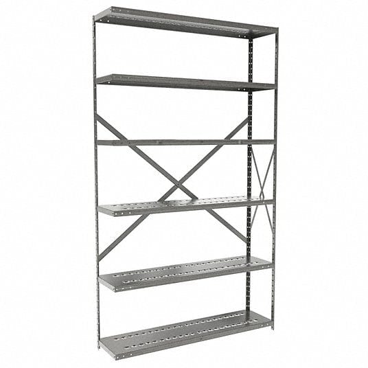Centerline Dynamics Hi-Tech Metal Shelving Adder Hallowell Hi-Tech Metal Shelving 48"W x 12"D x 87"H 725 Dark Gray 6 Adjustable Shelves Unit Open Style with Sway Braces