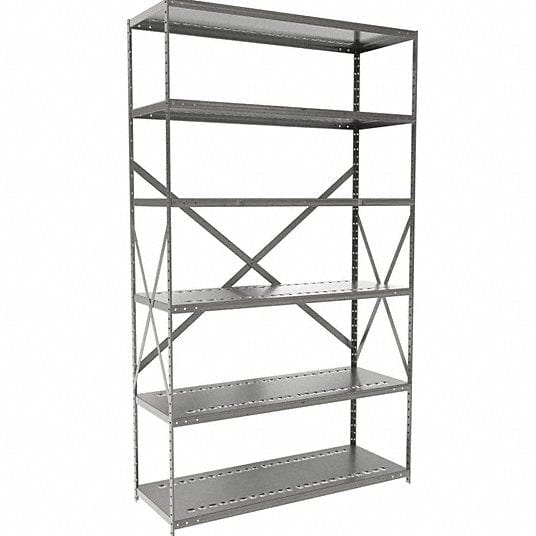 Centerline Dynamics Hi-Tech Metal Shelving Starter Hallowell Hi-Tech Metal Shelving 48"W x 18"D x 87"H 725 Dark Gray 6 Adjustable Shelves Unit Open Style with Sway Braces