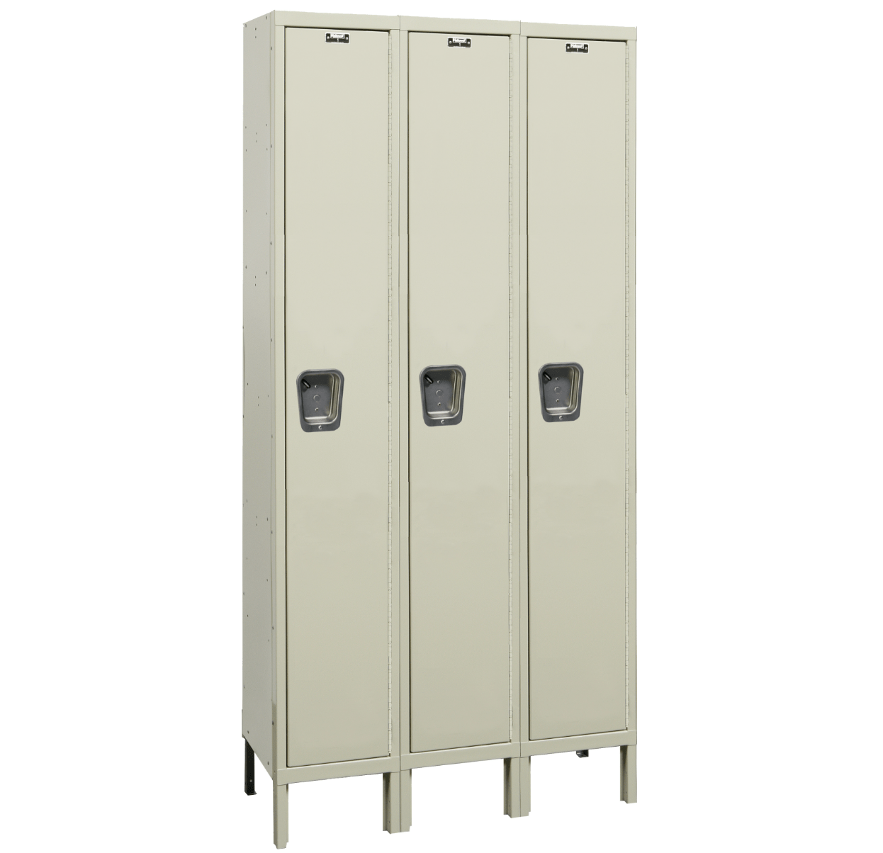 Centerline Dynamics Maintenance Free Quiet Lockers Tan / Assembled Hallowell Maintenance-Free Quiet (MFQ) Locker, 36"W x 12"D x 78"H, Single Tier, 3-Wide