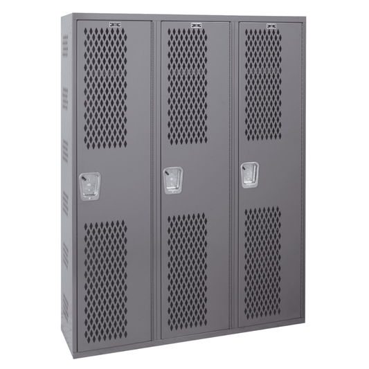 Hallowell Welded Single-Point Ventilated Locker, 36"W x 18"D x 72"H, 725 Dark Gray, Single Tier, 3-Wide, All-Welded