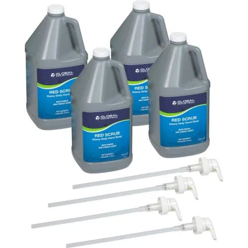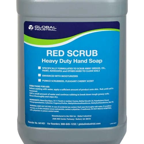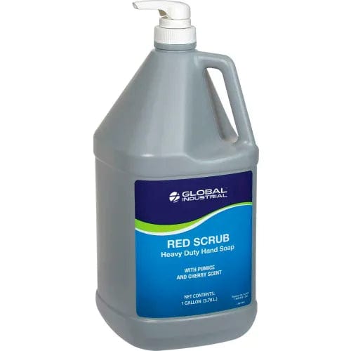 Red Scrub Heavy Duty Hand Cleaner contains pumice to remove paints, inks, grease, tar, cutting fluids and other heavy duty soils. Ideal for most industrial environments. The mild solvent formula with moisturizers features a pleasant cherry scent. Pump gallon bottle is ideal for applications when portability and convenience are important. Gallon pump bottle. Sold 4 bottles per case.