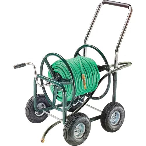 With the capacity to handle up to 400' of 5/8" garden hose, the Ames Estate Garden Hose Wagon is robust enough to take care of all your hose management needs. Four-wheel design makes it easy to transport hose around your property. The durable steel construction provides years of service.
