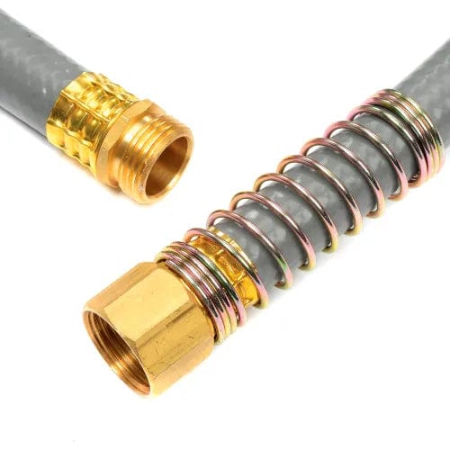 Heavy Duty professional garden hose is built to last and provide years of service. High burst rating for use in many applications. Hose end attachment features heavy-duty brass coupling with spring to prevent kinking at the spigot. Up to 450 PSI burst pressure rating.