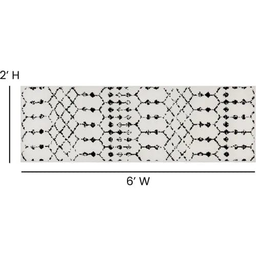 - Geometric Bohemian Low Pile Rug, 2' x 6', Ivory/Black