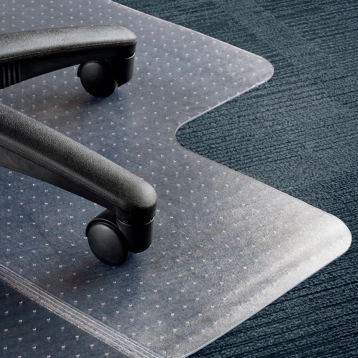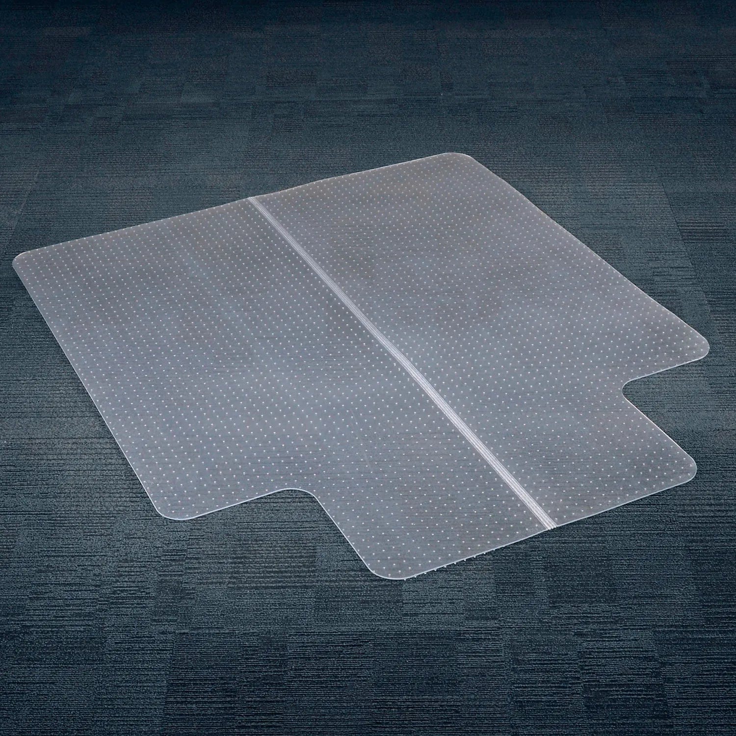 This versatile chair mat immediately unfolds for instant use right out of the box. The ability to fold the mat, reduce its size and easily move it from one are to the next is advantageous for workspaces that change or move. This sturdy, vinyl mat from Interion® By Global Industrial will help prolong the life of valuable flooring by protecting against chair caster wear and tear. Any chair user will be able to maneuver their chair easily and effortlessly, as this mat withstands heavy traffic and features an anti-skid textured top. Mat underside has anchor points to keep mat firmly positioned on carpeted surfaces. This chair mat is ideal for low pile carpet up to 1/4" thick, including padding.