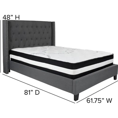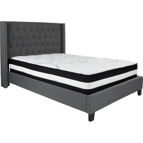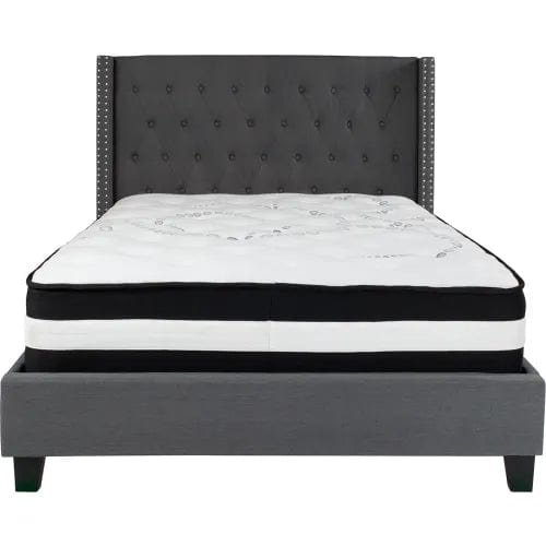 - Riverdale Tufted Upholstered Platform Bed, Dark Gray, Pocket Spring Mattress, Full